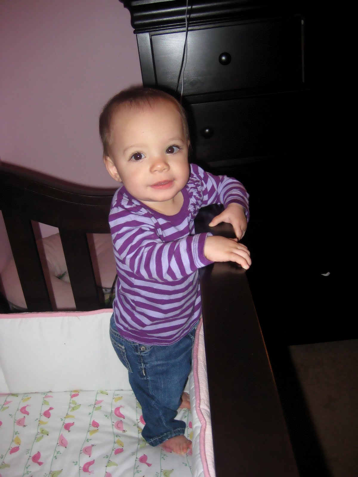- She is always wanting to stand now and is cruising a little which is new for her since she is still a big scaredy cat. It's another one of those things, she is capable, but she gets scared and looks up at you with her big eyes and holds her hand out for help. It's so cute!